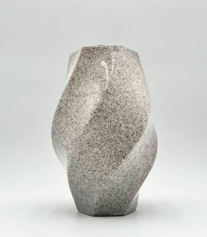 Medžiaga, iš kurios pagaminta vaza, yra UAB „Poligrana“ gaminamas polimergranitas. Atspari įbrėžimams ir oro sąlygoms.